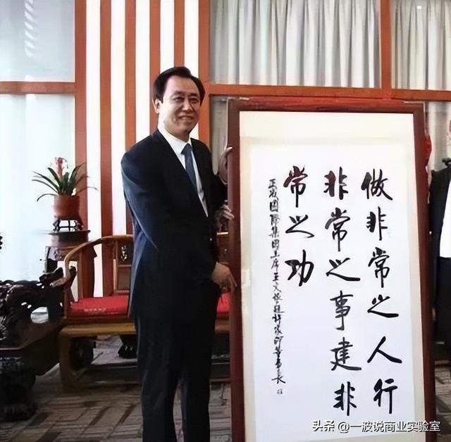 在许家印最为风光的时候,某位王姓民营大佬曾送给他两幅题词。一幅写道:“做非常之人,行非常之事,建非常之功。”另一幅嵌入他的名字:“许帝血脉,家园情怀,印象中国,卓尔不凡,越界成就,且行且远,伟岸人生,大器天成。”首字连起来,正是“许家印卓越且伟大”。
