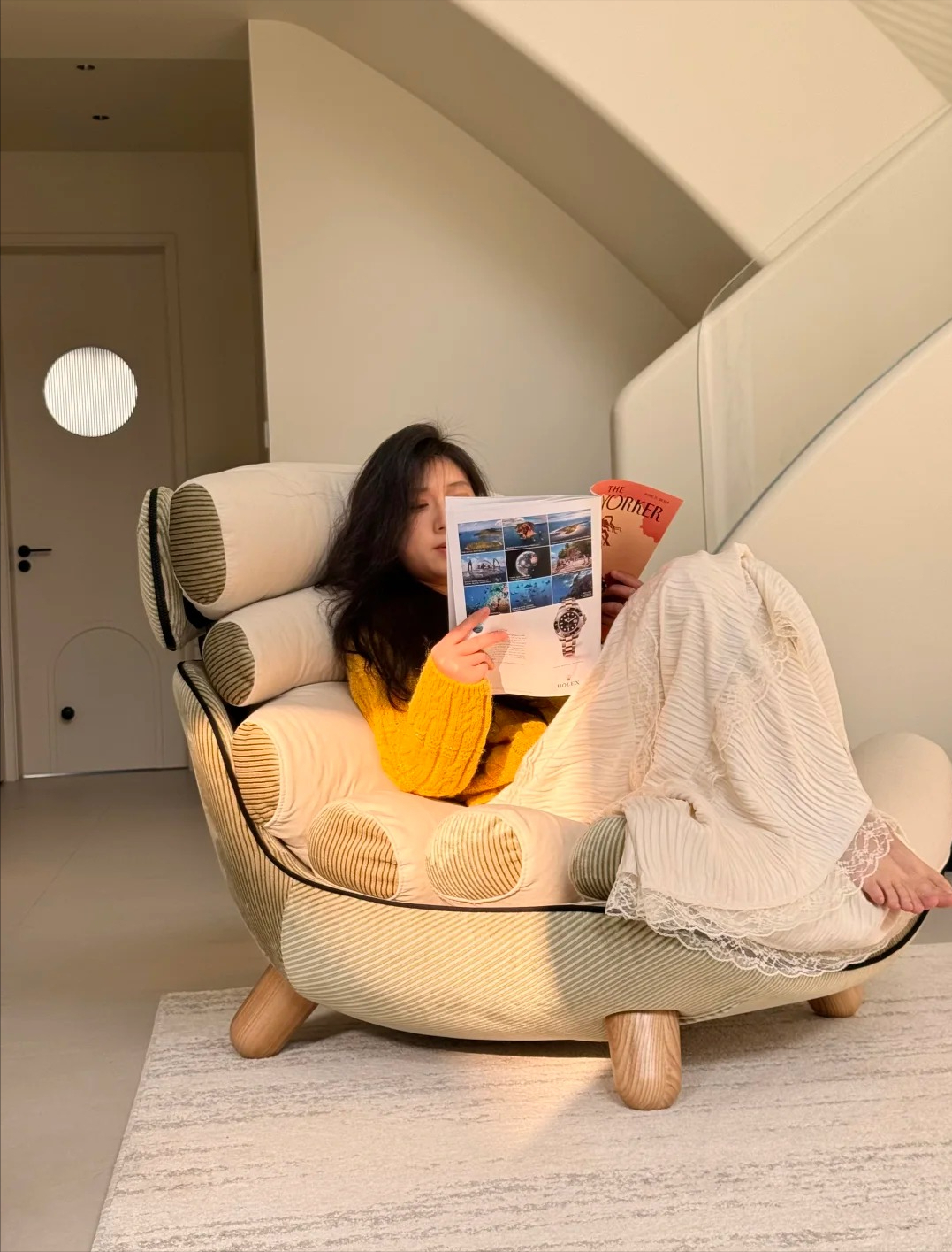 闺蜜说,这种送客风设计真的很香,没有沙发的束缚,一把折叠椅、一堆潮玩,想瘫就瘫、想造就造。在这个“被嫌弃”的空间里抱着潮玩发呆,这才是独居的反骨快乐!
